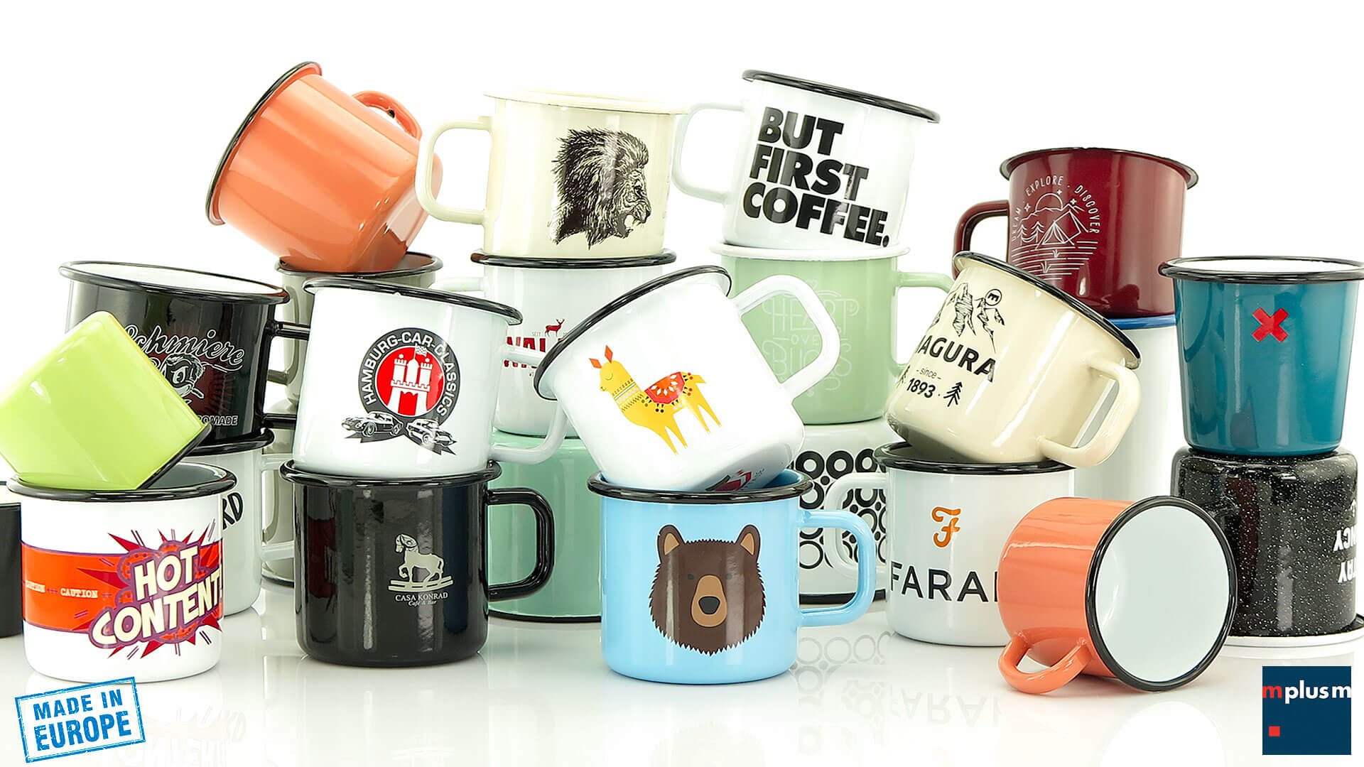 Hergestellt werden die Tassen komplett in Europa und die Lieferzeit beträgt in der Regel auch mit individuellem Aufdruck nicht länger als 4 bis 5 Wochen - wenn die Tassen wegen der hohen Nachfrage nicht gerade wieder einmal ausverkauft sind und wir mit der Produktion kaum mehr nachkommen. Bei Bestellmengen unter 1.000 Stück werden die Emaille-Tassen nach wie vor mit sehr viel Handarbeit hergestellt, manchmal braucht die Produktion dann schon etwas Zeit. Aber es entsteht in jedem Fall ein dauerhafter, langlebiger und nachhaltiger Artikel, mit ganz individuellem Design.