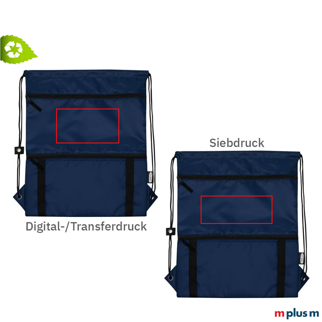 Der Sportbeutel 'Adventure' besteht aus recyceltem Polyester und hat zwei geräumige Fächer, in denen alles seinen Platz findet. Mit Logo Druck ein nachhaltiger Werbeartikel.