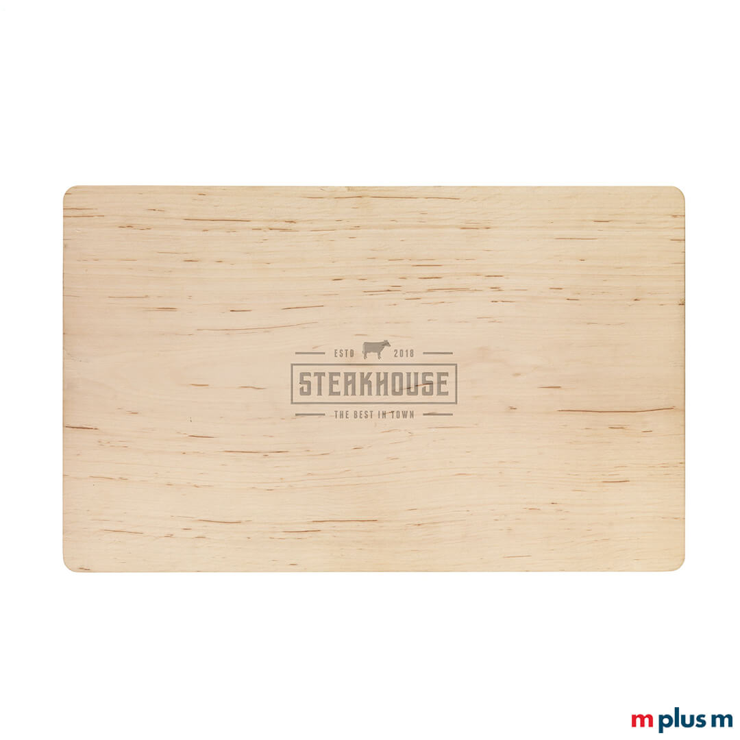 Schneidebrett bedrucken: das Schneidebrett aus Erlenholz wird in Kroatien hergestellt. Das Schneidebrett ist hochwertig, robust und dadurch äußerst langlebig. Mit Logo Druck ein nachhaltiger Werbeartikel.