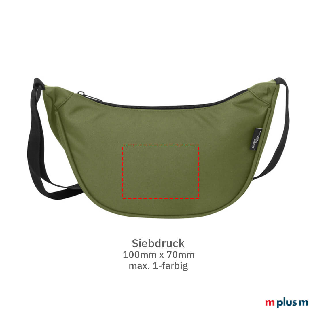 Ab einer Menge von 50 Stück können Sie die 'Bente' Recycling Bauchtasche Bente mit Logo bedrucken lassen. Die Gürteltasche oder Slingbag eignet sich ideal als Werbeartikel oder Werbegeschenk für Kund:innen und Mitarbeitende.