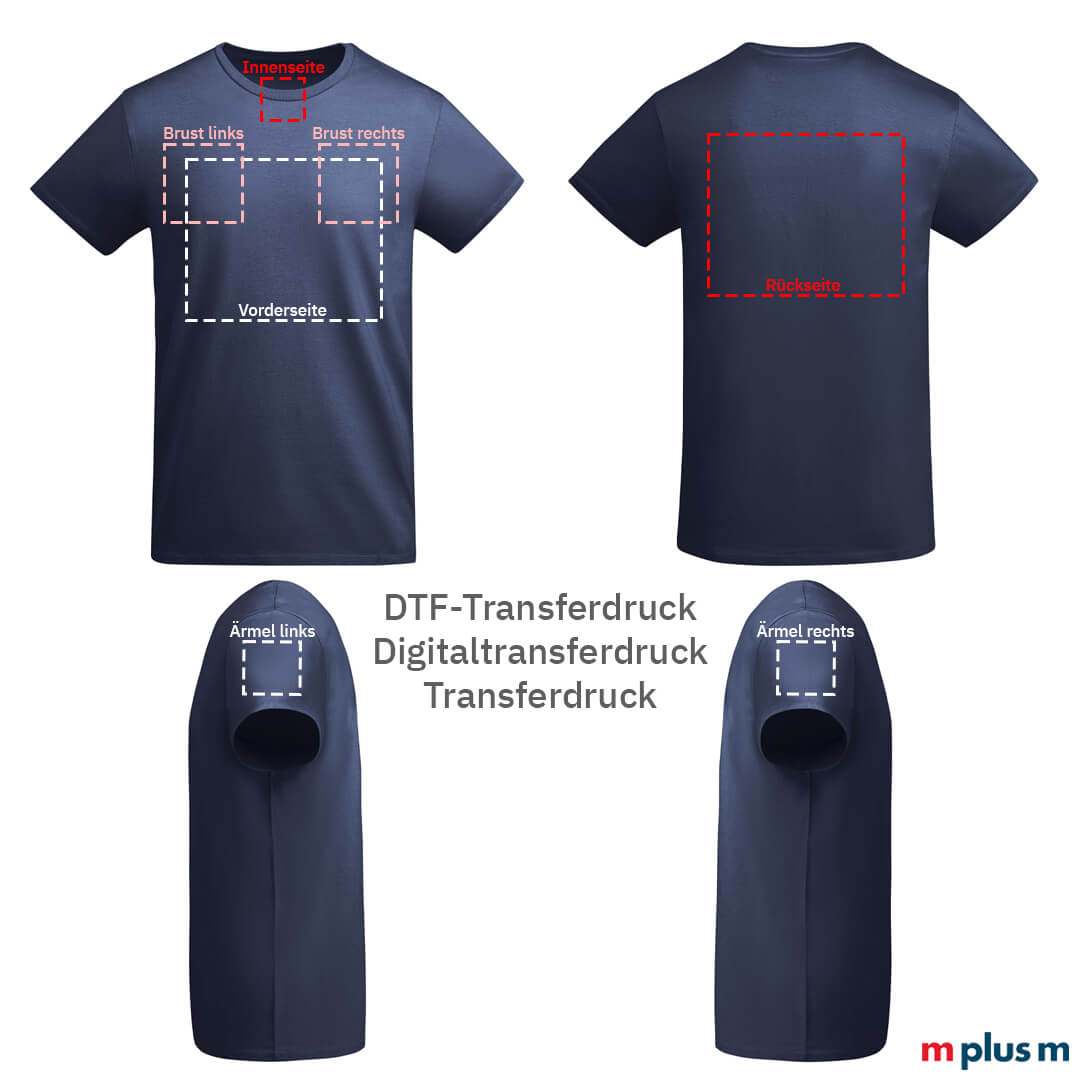 | Digital-Transferdruck | max. 280 x 230 mm Vollfarbig | max. 110 x 110 mm Vollfarbig | max. 90 x 80 mm Vollfarbig |