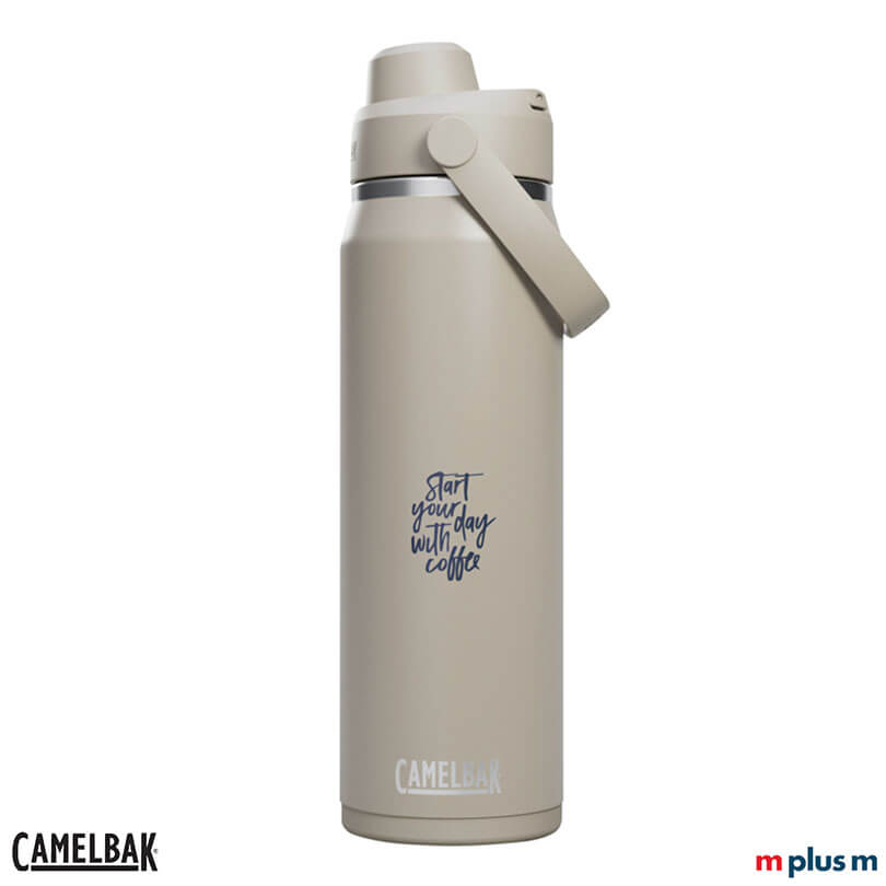 Die Camelbak® ISO Thrive Chug 740 ml Thermosflasche mit robuster und langlebiger Vollpulverbeschichtung. Die Getränke bleiben durch die doppelwandige Vakuumisolierung stundenlang heiß oder kalt. Der neue Ausgussdeckel klappt auf und bleibt automatisch in geöffneter Position. Diese Kombination aus Vakuumisolierung, robustem Edelstahl, auslaufsicherem Verschluss und praktischen Details macht die Camelbak Thrive Chug besonders attraktiv. Ab einer Menge von 25 Stück können Sie die Trinkflasche von Camelbak als Werbeartikel oder Mitarbeitergeschenk mit Logo bedrucken oder gravieren lassen.