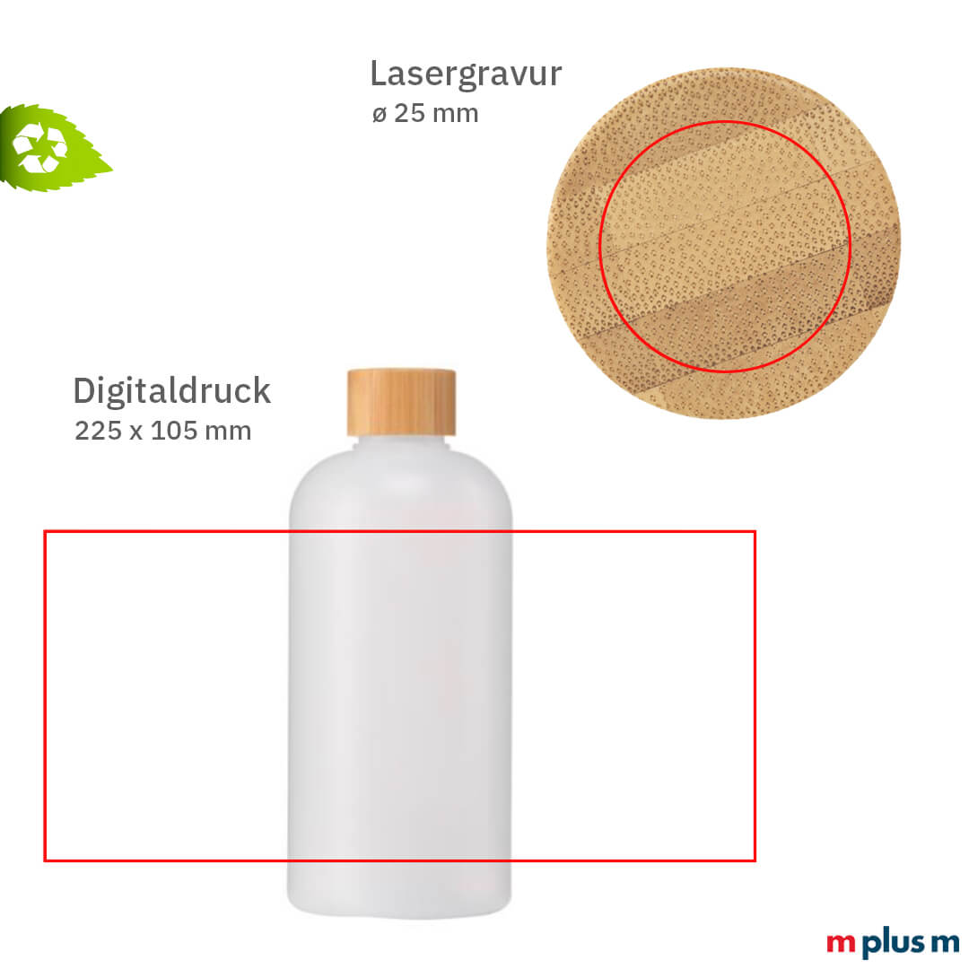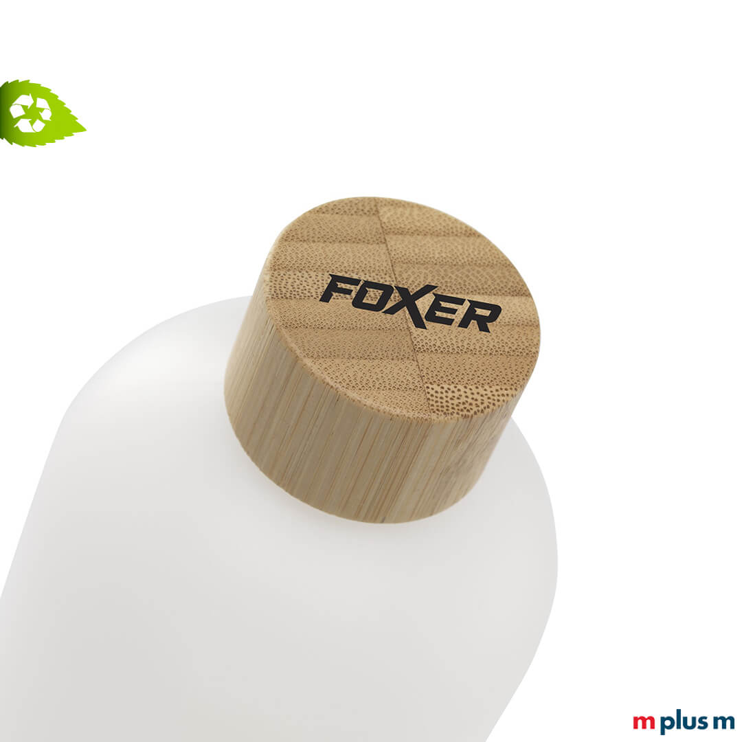 Die 'Cane' Mehrweg Trinkflasche mit Logo Druck ist ein nachhaltiger Werbeartikel aus Recycling Zuckerrohrabfällen und Bambus.