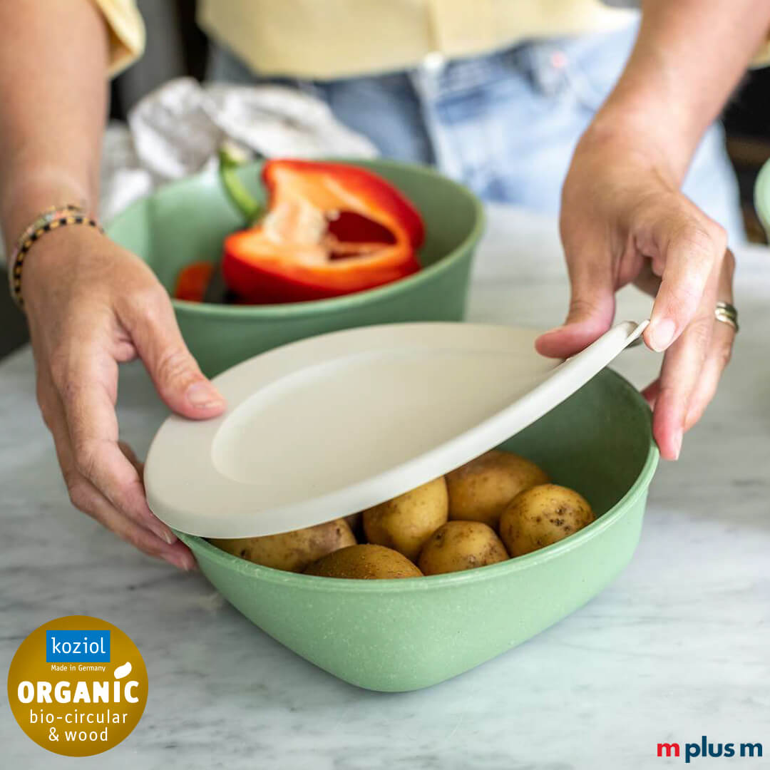 Die Take Away Bowl 'Connect Box 1,3l Bio Circular' von Koziol wird aus hochwertigem Bio-Kunststoff in Deutschland hergestellt und ist zu 100% auslaufsicher. Der quadratische Boden der Box verleiht Standfestigkeit. Für Müsli, Joghurt oder auch eine Suppe geeignet. Langlebig, nachhaltig und schadstoffrei.