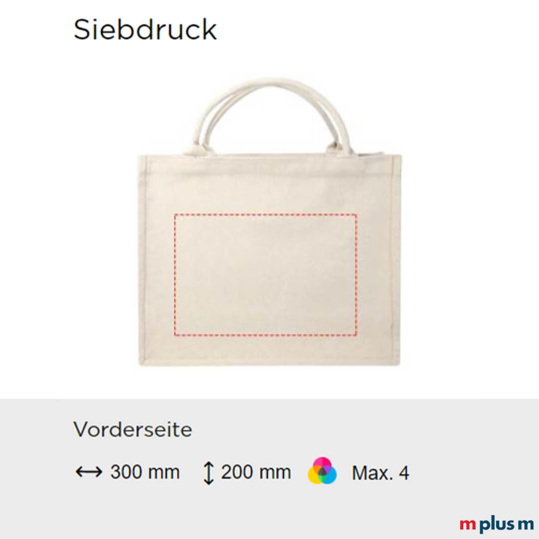 | Siebdruck | 300 x 200 mm (Vorder-/Rückseite) | max. 4-farbig |