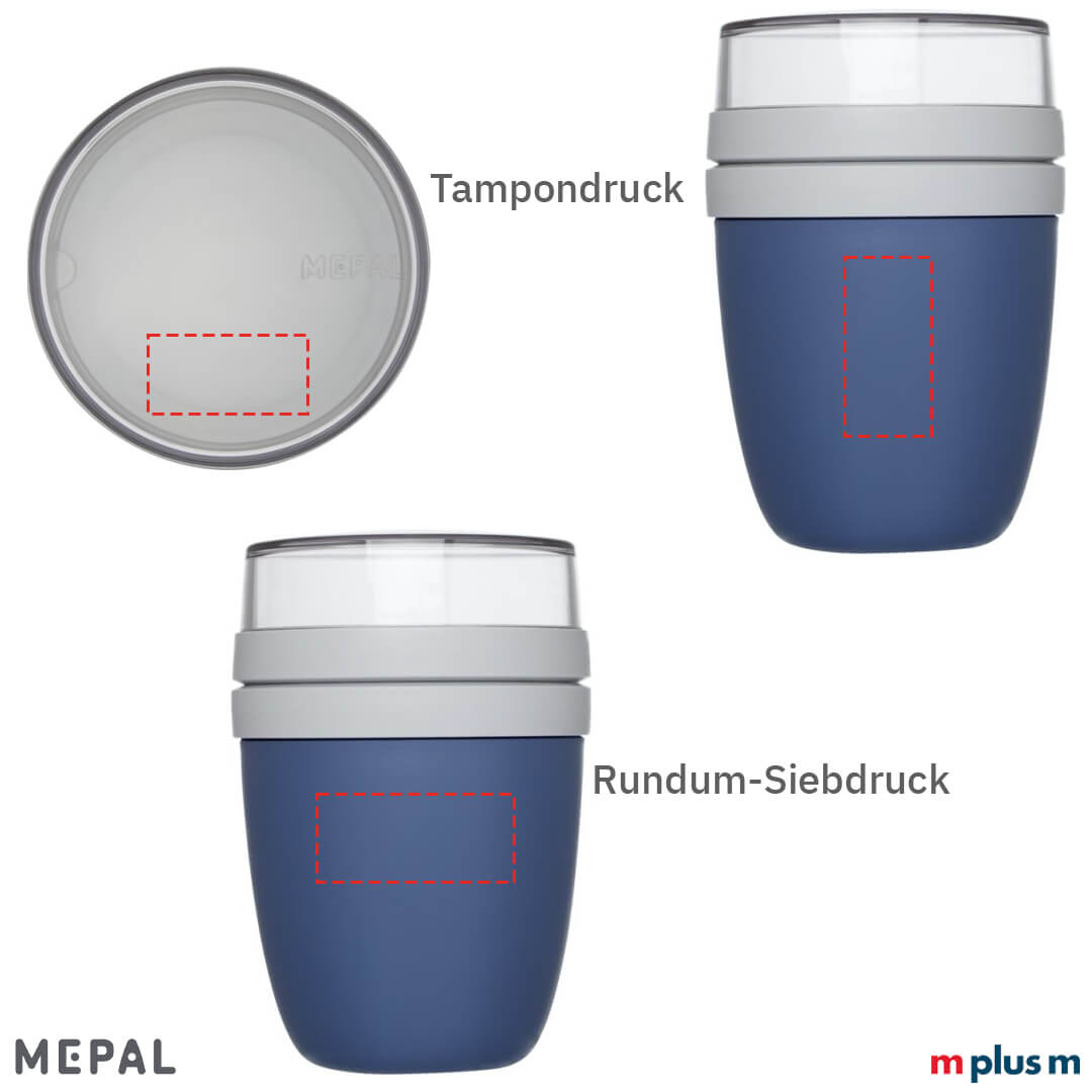 Der Müslibecher 'Ellipse' Lunchpot von Mepal mit individuellem Logo Druck. Aus Europa. Auch mit Logo-Druck spülmaschinenfest. Der Müsli To Go Becher hat zwei separate Behälter. So lassen sich zum Beispiel Müsli und Obst getrennt voneinander aufbewahren und sicher transportieren. Mit Logo Druck ein nachhaltiger Werbeartikel 'Made in EU'. Auch mit individuellem Druck kurze Lieferzeiten. Günstig und auch perfekt für To Go und Take away.