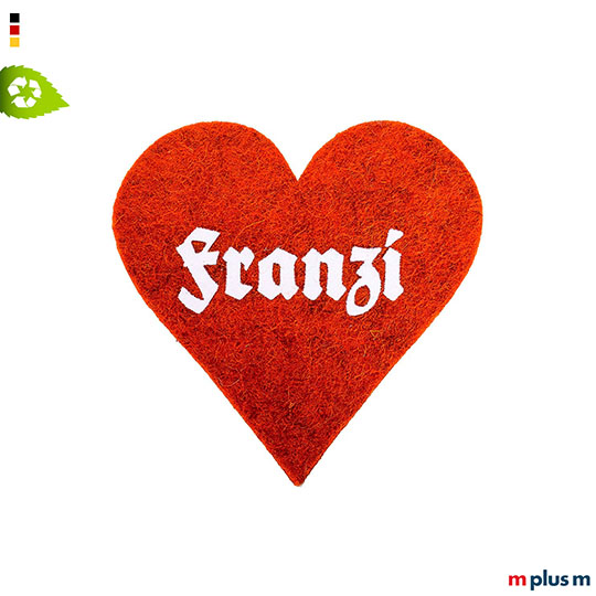 Der Herz Anstecker aus hochwertigem Recycling Filz wird in Deutschland hergestellt und kann als Oktoberfest Giveaway oder Werbeartikel schön mit Ihrem Logo oder Motiv personalisiert werden