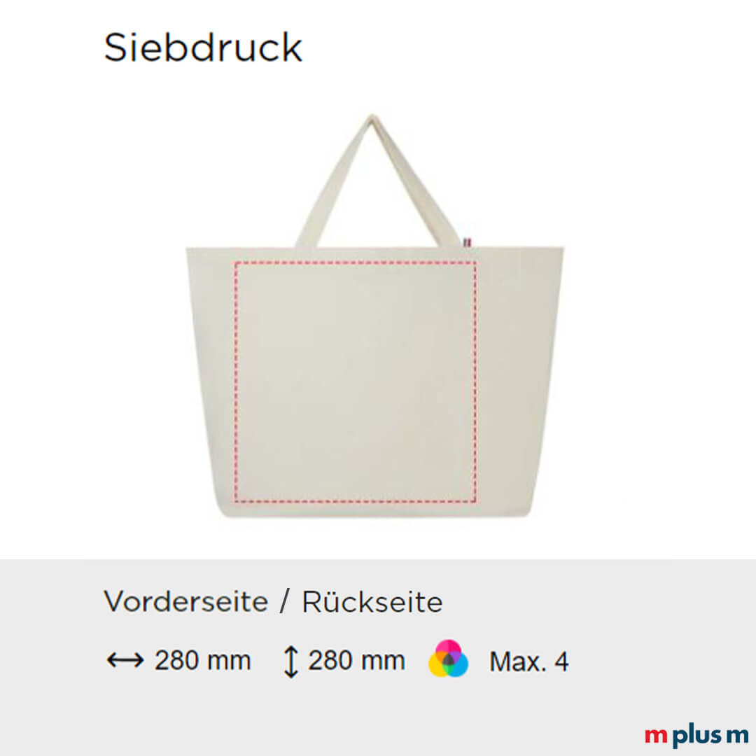 | Siebdruck | 280 x 280 mm | Vorder-/ Rückseite | max. 4-farbig |