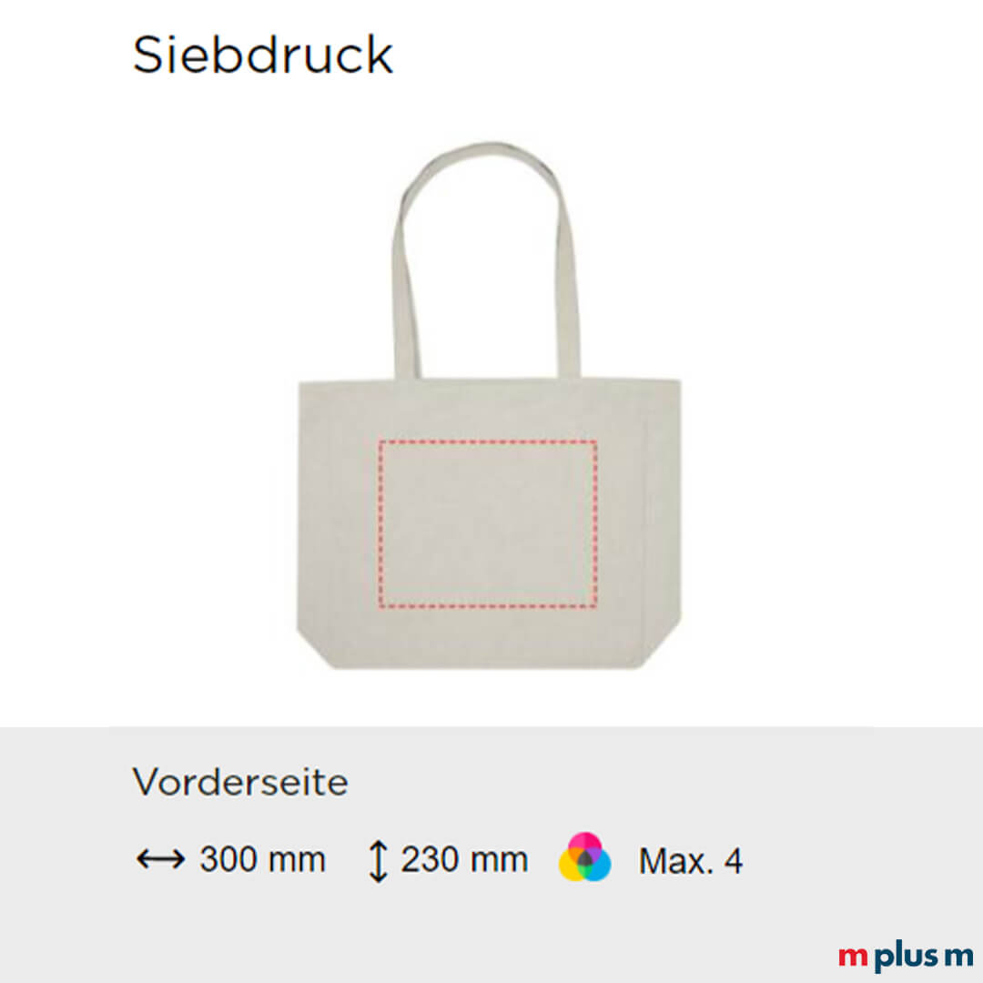 | Siebdruck | 300 x 200 mm (Vorder-/Rückseite) | max. 4-farbig |