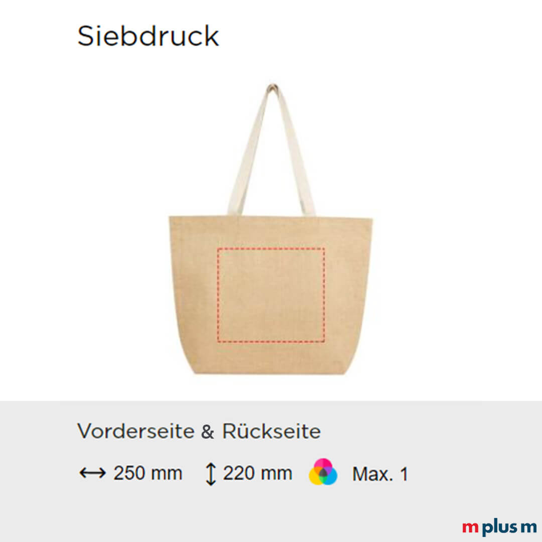 Ab einer Bestellmenge von 50 Stück können Sie die 'Grand Basar' Jutetasche bedrucken lassen. Dadurch wird die Jute Tragetasche zu Ihrem perfekten nachhaltigen Werbeartikel.