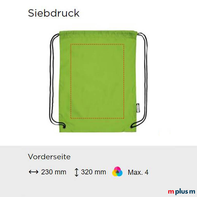 Ab einer Bestellmenge von 250 Stück können Sie den GYM Recycling ♻️ Sportbeutel mit Ihrem Logo bedrucken lassen. Dadurch wird der Sportbeutel zu Ihrem idealen Werbeartikel.