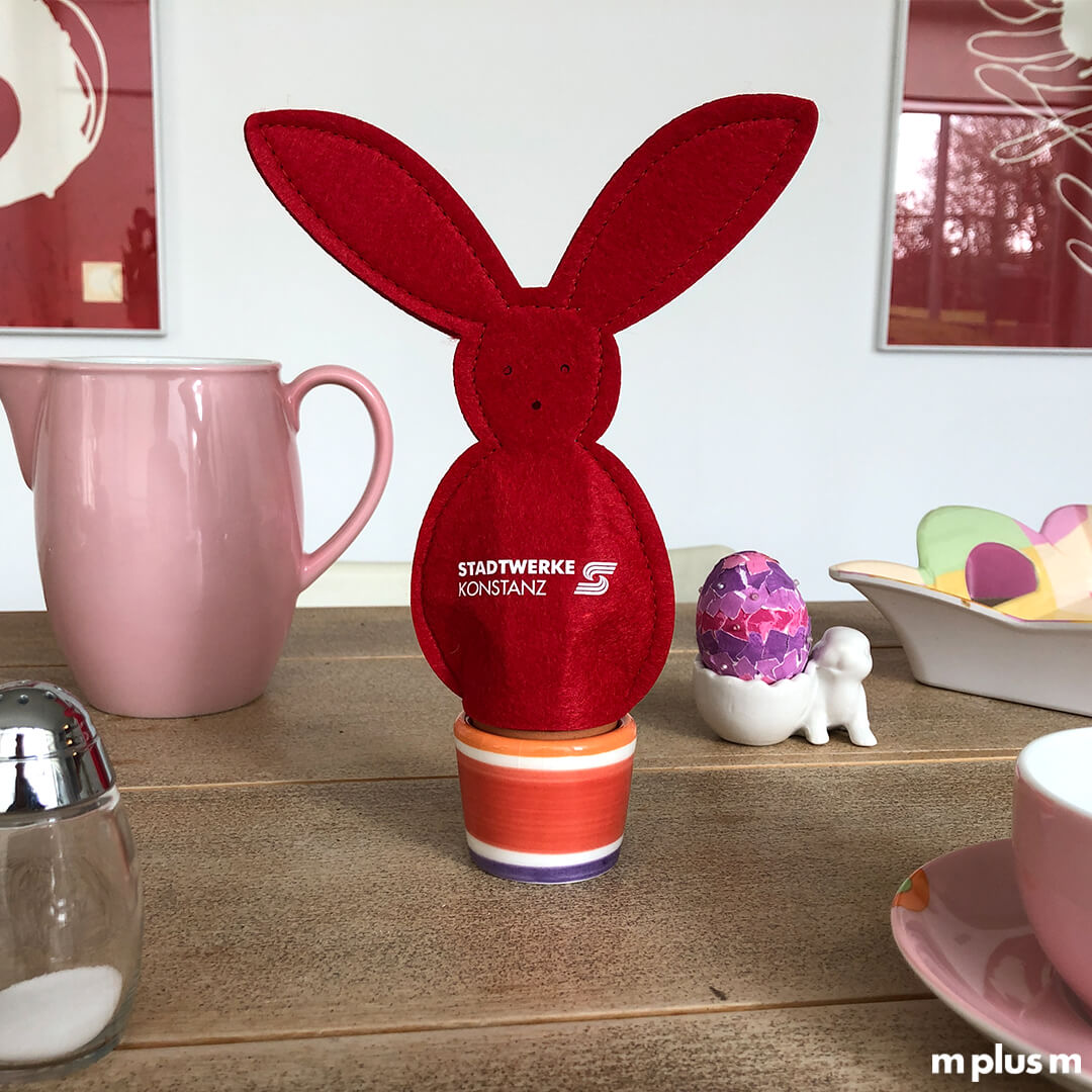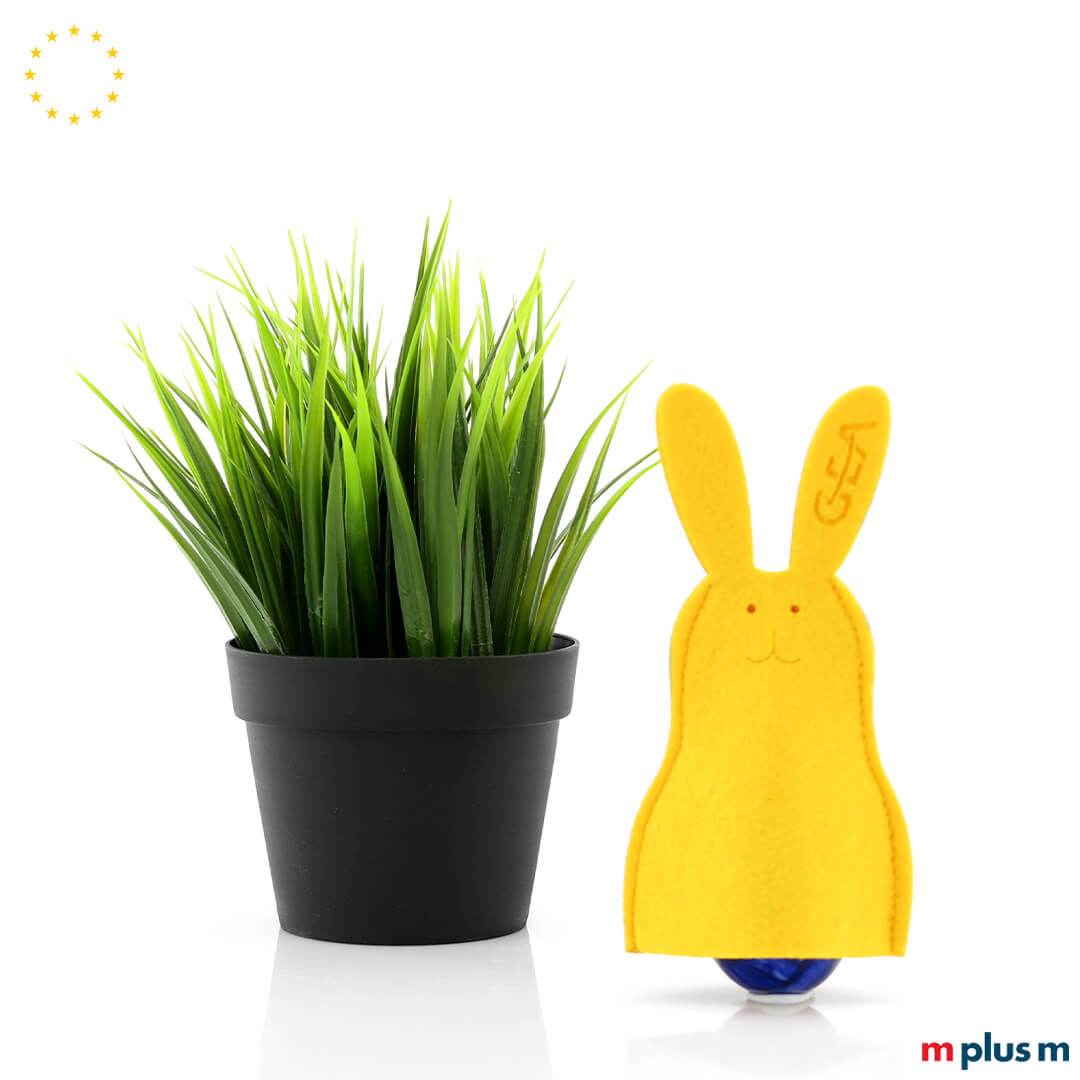 Ab einer Menge von 1000 Stück können Sie die Eierwärmer mit Ihrem Logo bedrucken lassen. Dadurch werden sie zu einem idealen Werbeartikel. Geeignet als Mailingartikel zu Ostern.
