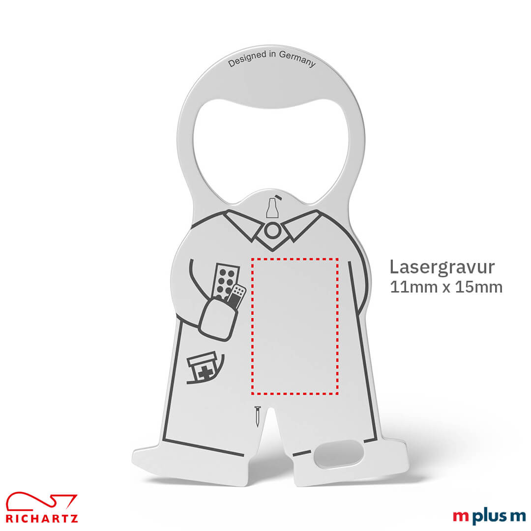 - Edelstahl Lasergravur auf Frontseite max. 11 x 15 mm und/oder