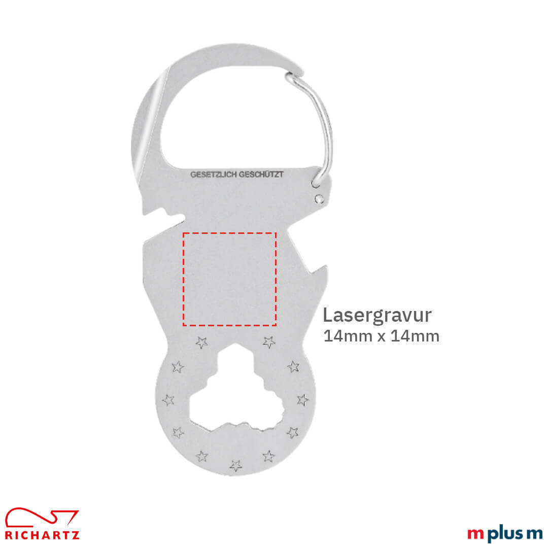 Ab einer Menge von 100 Stück können Sie das 'Key Organizer Classic 1' Richartz Tool gravieren lassen. Dadurch wird es zu Ihrem perfekten Werbeartikel. Auch eine individuelle Verpackung ist ab 100 Stück möglich.