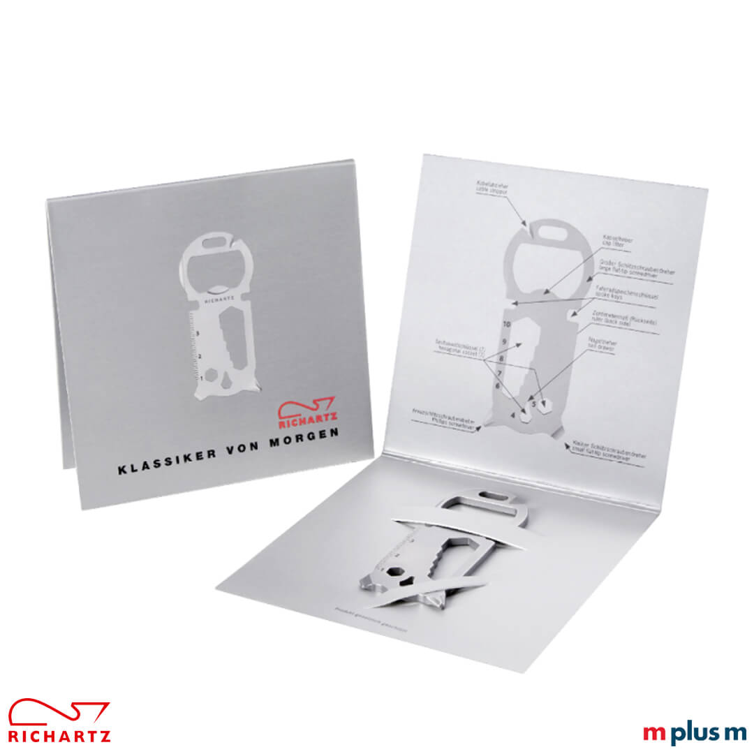 Das Multifunktionstool 'Key Tool 16+' bietet hohe Multifunktionalität auf kleinstem Raum. Ab 100 Stück können Sie diesen Richartz Artikel mit Logo gravieren lassen. Dadurch erhalten Sie einen idealen Richartz Werbeartikel, perfekt für ein Mailing, On-Packing oder als Give-Away.