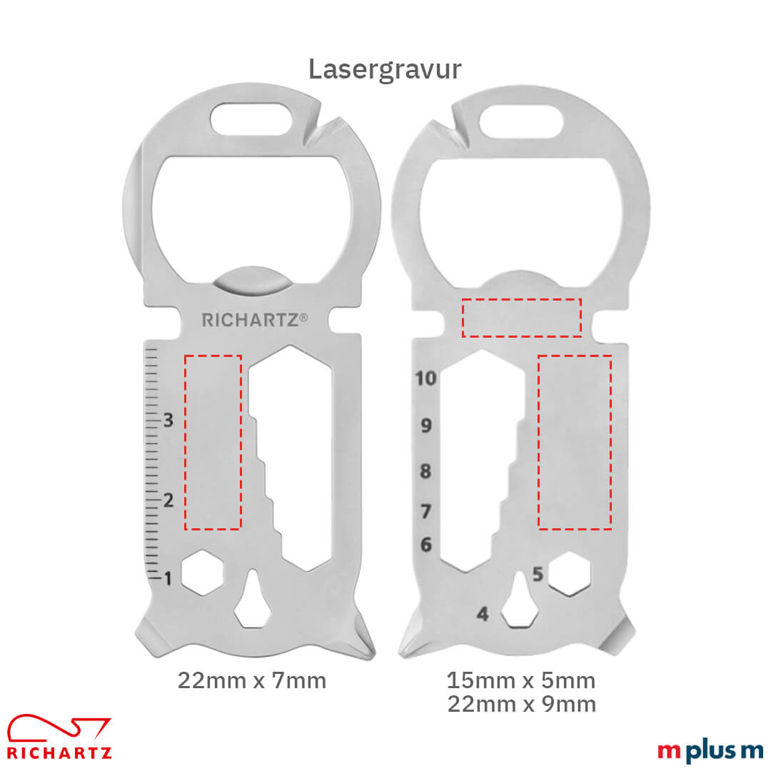 Ab einer Menge von 100 Stück können Sie das Richartz 'Key Tool 16+' mit Logo gravieren lassen. Dadurch wird dieses Multifunktionstool zu Ihrem pefekten Richartz Werbeartikel. Auch eine individuelle Verpackung ist ab 100 Stück möglich.