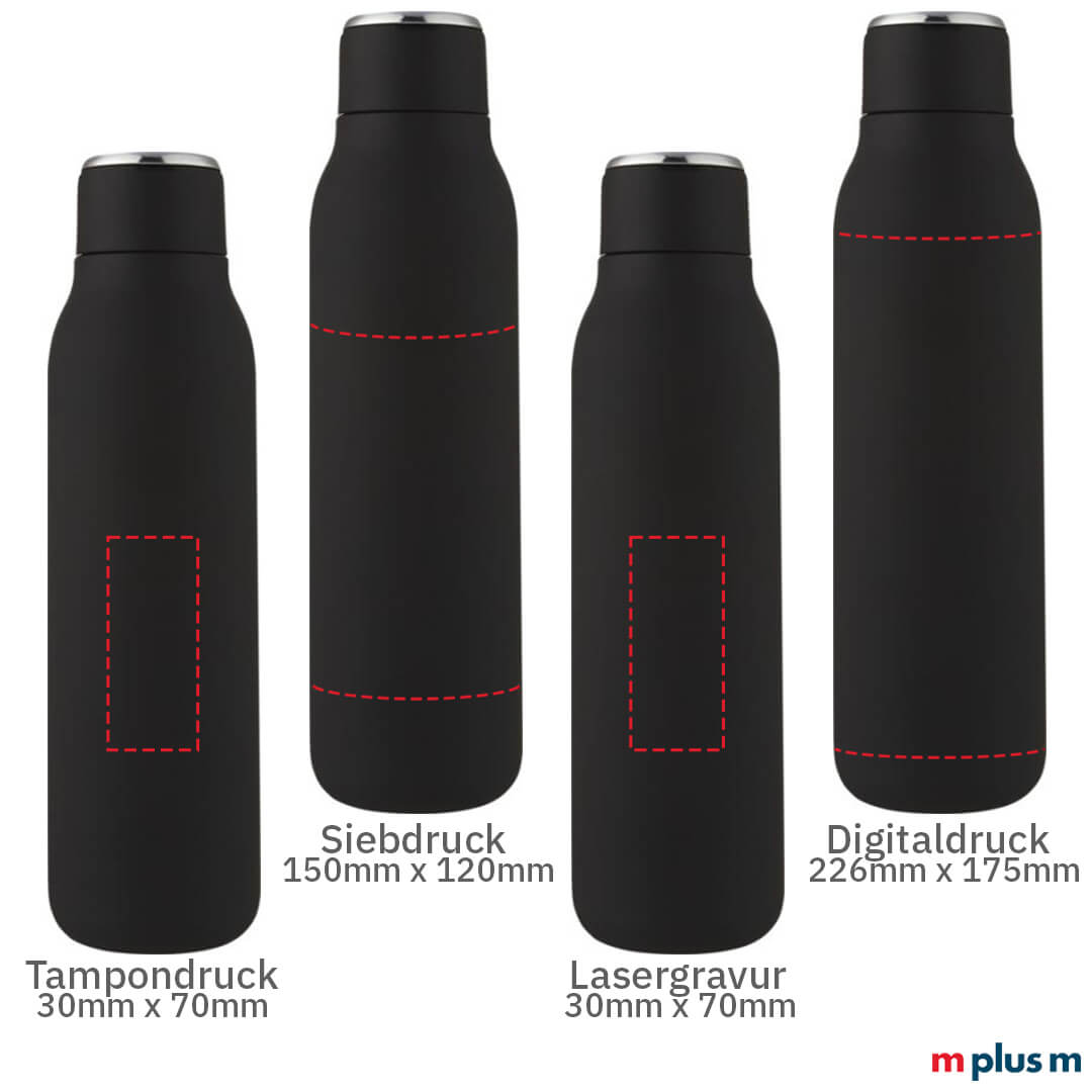 Ab einer Menge von 25 Stück können Sie die 'Mara' Edelstahlflasche bedrucken lassen. Dadurch wird die Flasche zu Ihrem idealen Werbeartikel. Geeignet für Onboarding oder Mitarbeiterausstattung.