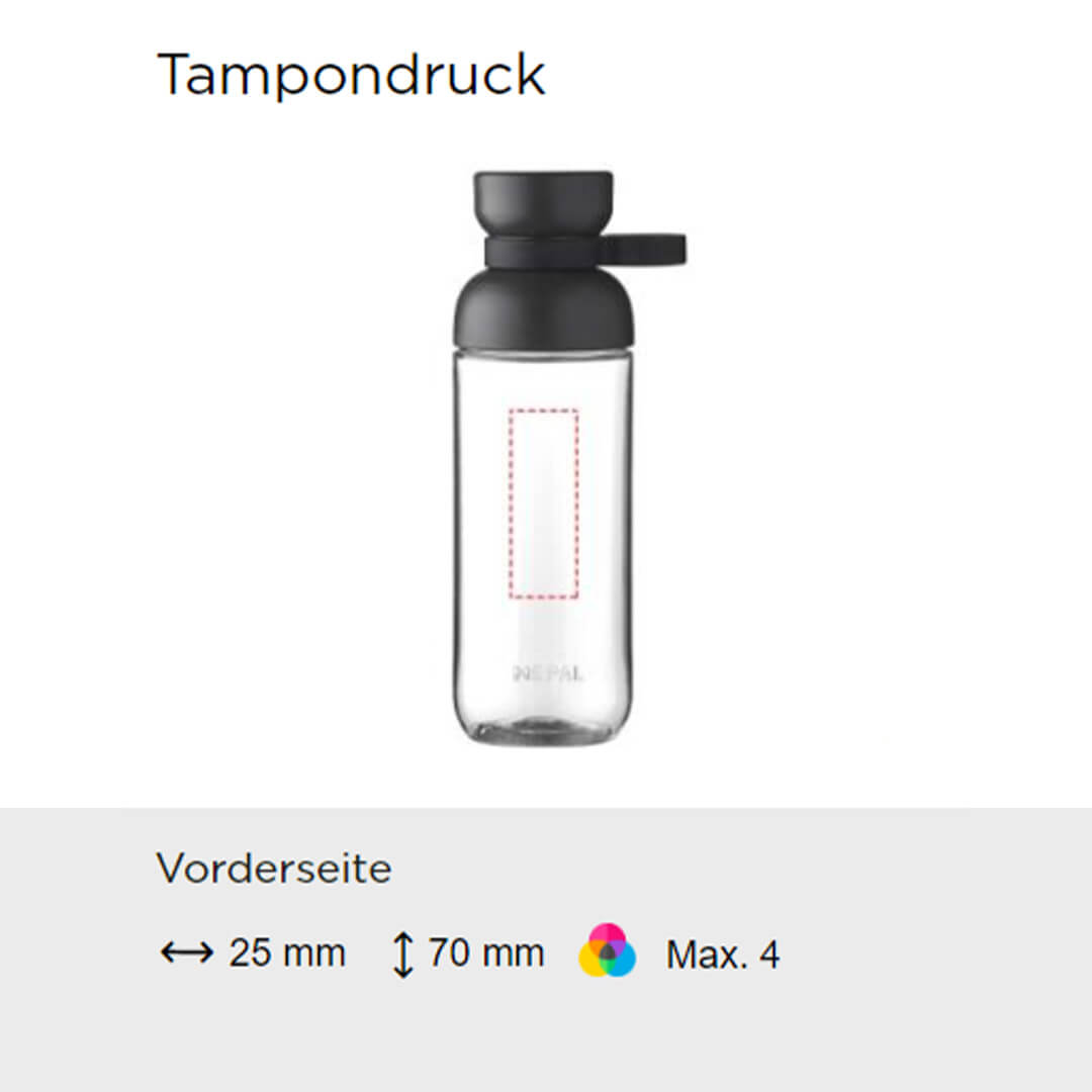 Ab einer Bestellmenge von 25 Stück können Sie die Wasserflasche 'Vita' von Mepal mit Logo bedrucken lassen. Dadurch wird sie zu Ihrem idealen Werbeartikel oder zu einem praktischen Werbegeschenk für Kunden und Mitarbeiter.