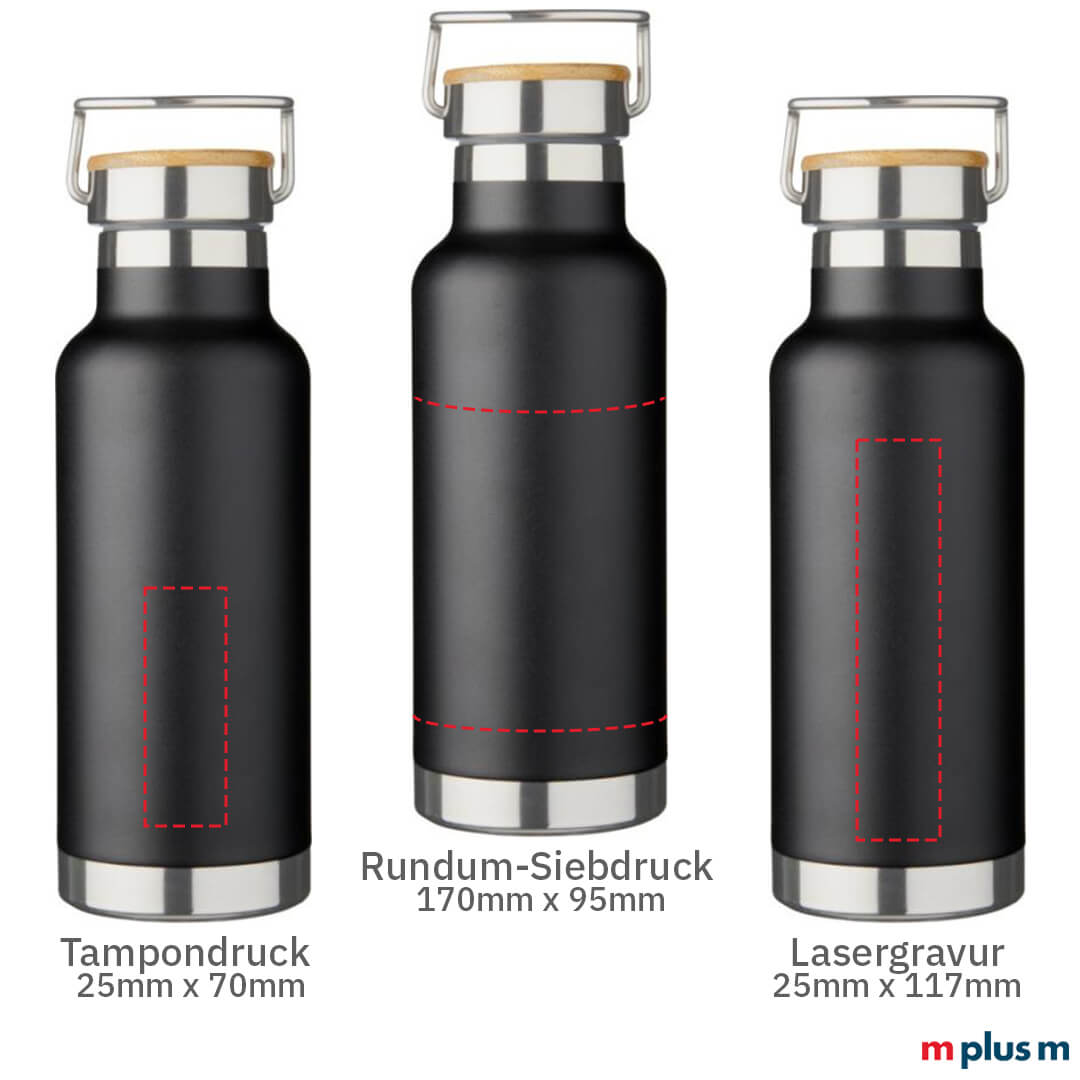 Schon ab einer Bestellmenge von 25 Stück individualisieren wir diese Thermosflasche für Sie als Werbeartikel.