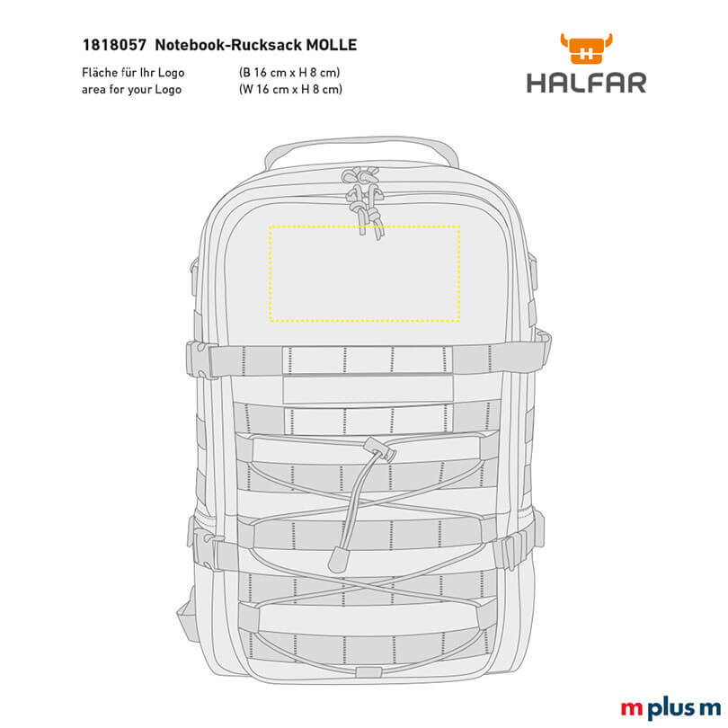 Ab einer Menge von 50 Stück können Sie den 'Molle' Notebook Rucksack bedrucken lassen. Bedruckte Rucksäcke sind ideal für das Employer Branding oder die Mitarbeiterausstattung und sind ideale Werbeartikel für Ihr Unternehmen.