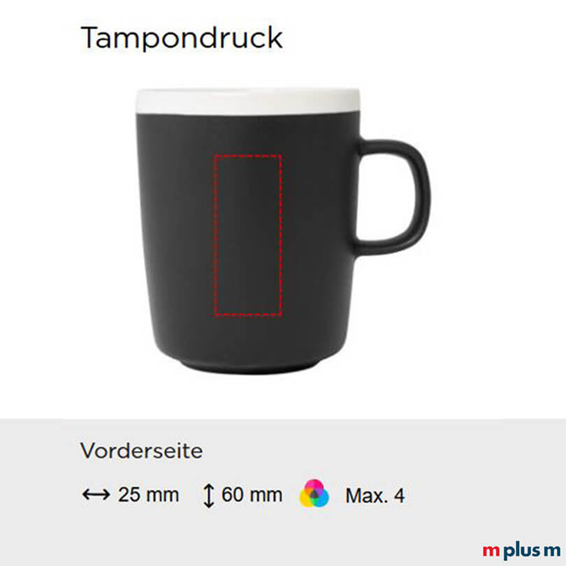 Ab einer Bestellmenge von 25 Stück können Sie die 'Lilio' Keramiktasse mit Logo oder Motiv bedrucken lassen. So wird die Tasse zu einem schönen Werbeartikel oder Werbegeschenk für Kunden und Mitarbeiter. Folgende Druckmöglichkeiten bestehen:
