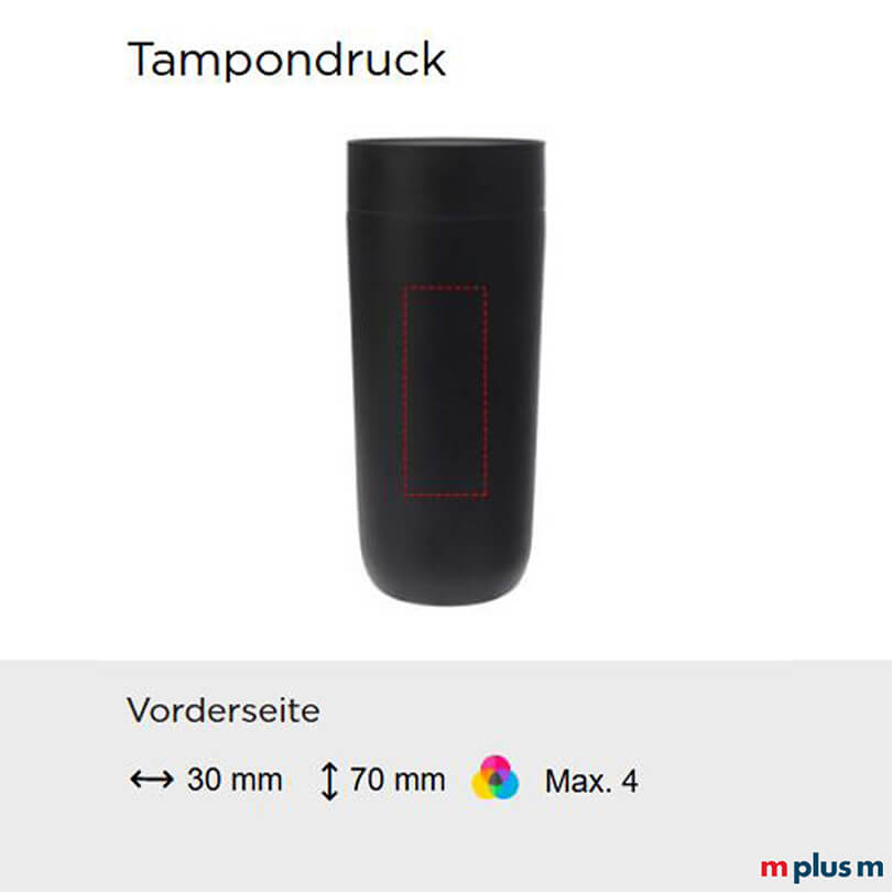 Ab einer Bestellmenge von 25 Stück können Sie den 'Narvik' Edelstahl Thermobecher bedrucken oder gravieren lassen. Dadurch wird der To Go Becher zu Ihrem idealen Werbeartikel oder Werbegeschenk für Kunden und Mitarbeiter. Folgende Druckmöglichkeiten bestehen: