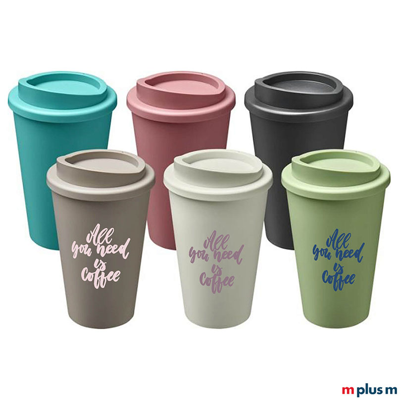 Der nachhaltige 'Nature Coffee Shop' Thermobecher wird in Europa mit 25 % biobasiertem Kunststoff hergestellt. Durch die doppelwandige Isolierung bleibt ihr Getränk im Coffee To Go Isolierbecher lange warm. Ein nachhaltiger Thermobecher mit Bio Kunststoff 100% Made in Europe. Ab 50 Stück spülmaschinenfest mit Logo zu bedrucken.