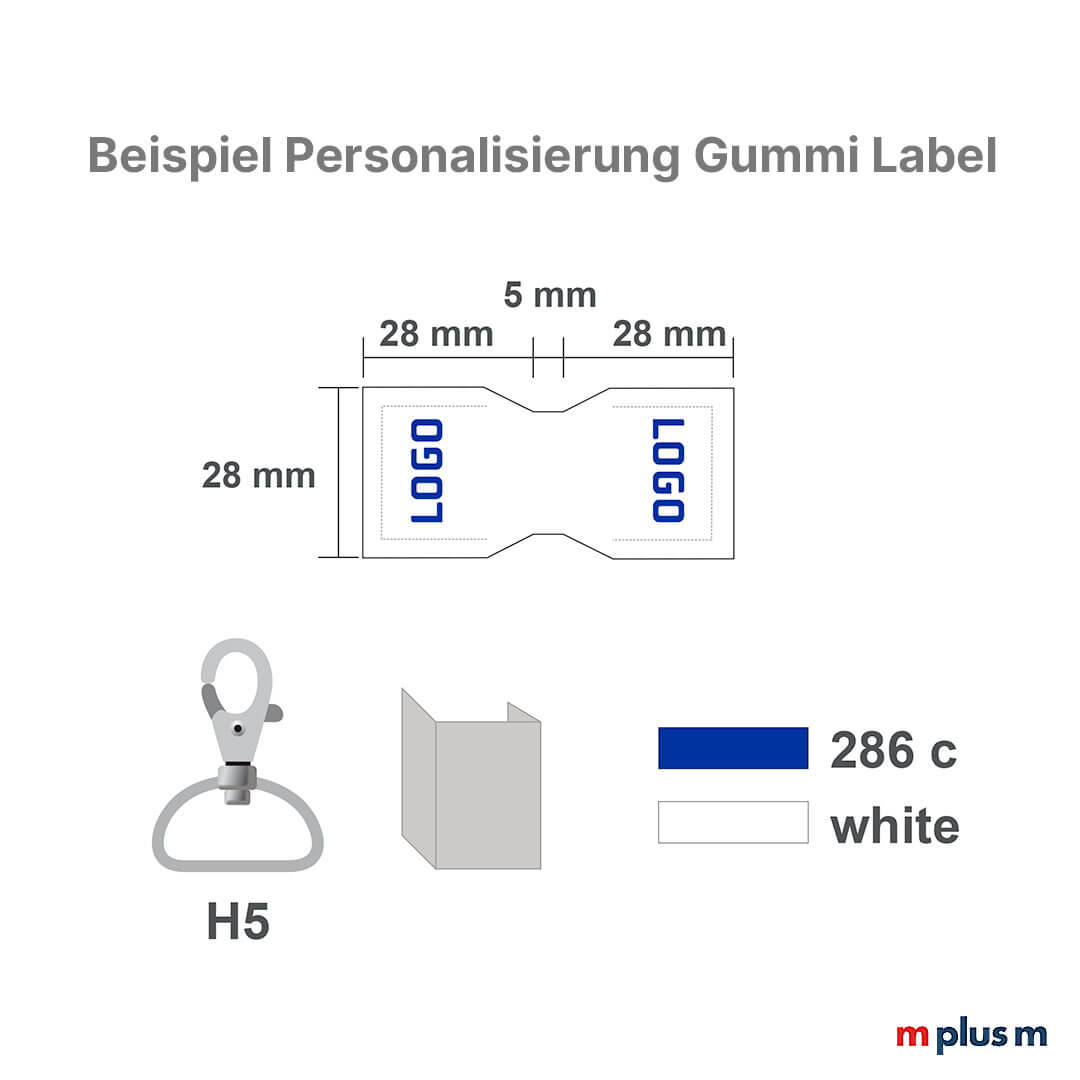 - Das Logo wird beidseitig auf das Gummilabel gedruckt