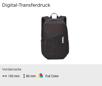 | Digital-Transferdruck | Vorderseite | 120 x 60 mm | vollfarbig |