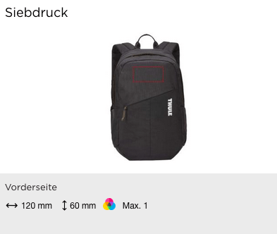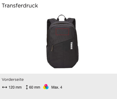 | Transferdruck | Vorderseite | 120 x 60 mm | max. 4-farbig |