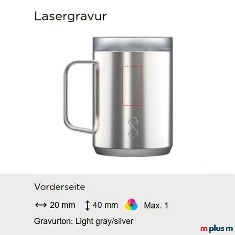 | Lasergravur | Vorderseite | Einfarbig (Hellgrau/Silber) | 20 x 40 mm |