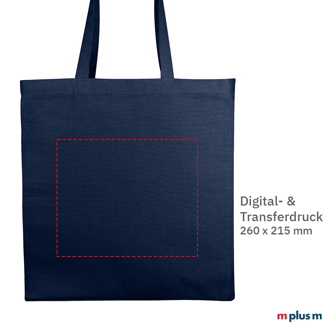 Material: 100 % Baumwolle, Stoffgewicht 220 g/m². Tragkraft bis zu 10 kg Inhalt.