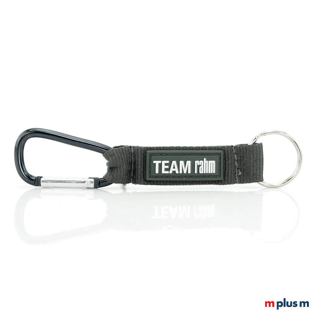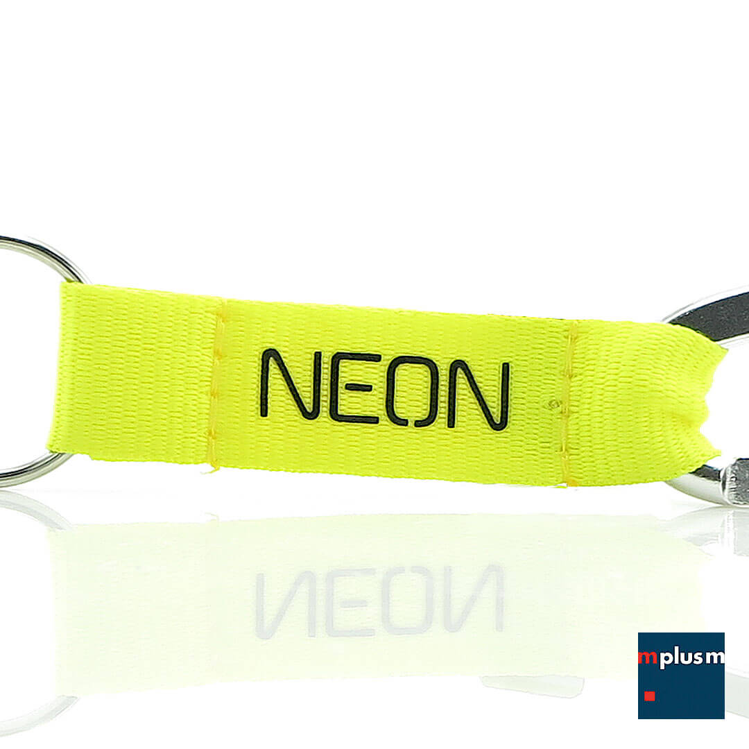 Schlüsselanhänger bedrucken: Karabiner Schlüsselanhänger mit Nylonband und Logo als Werbeartikel in preiswerter Sonderanfertigung.