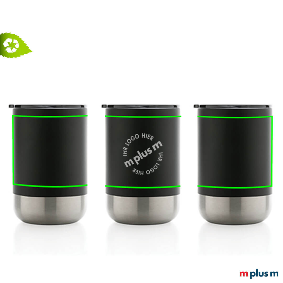 Der Becher aus recyceltem Stainless Steel mit Vakuumisolierung hält Getränke bis zu 3 Stunden warm oder bis zu 6 Stunden kalt. Der Deckel mit Aufschiebefunktion sorgt für ein tropfsicheres Trinkerlebnis. Mit Logo Druck ein nachhaltiger Werbeartikel.