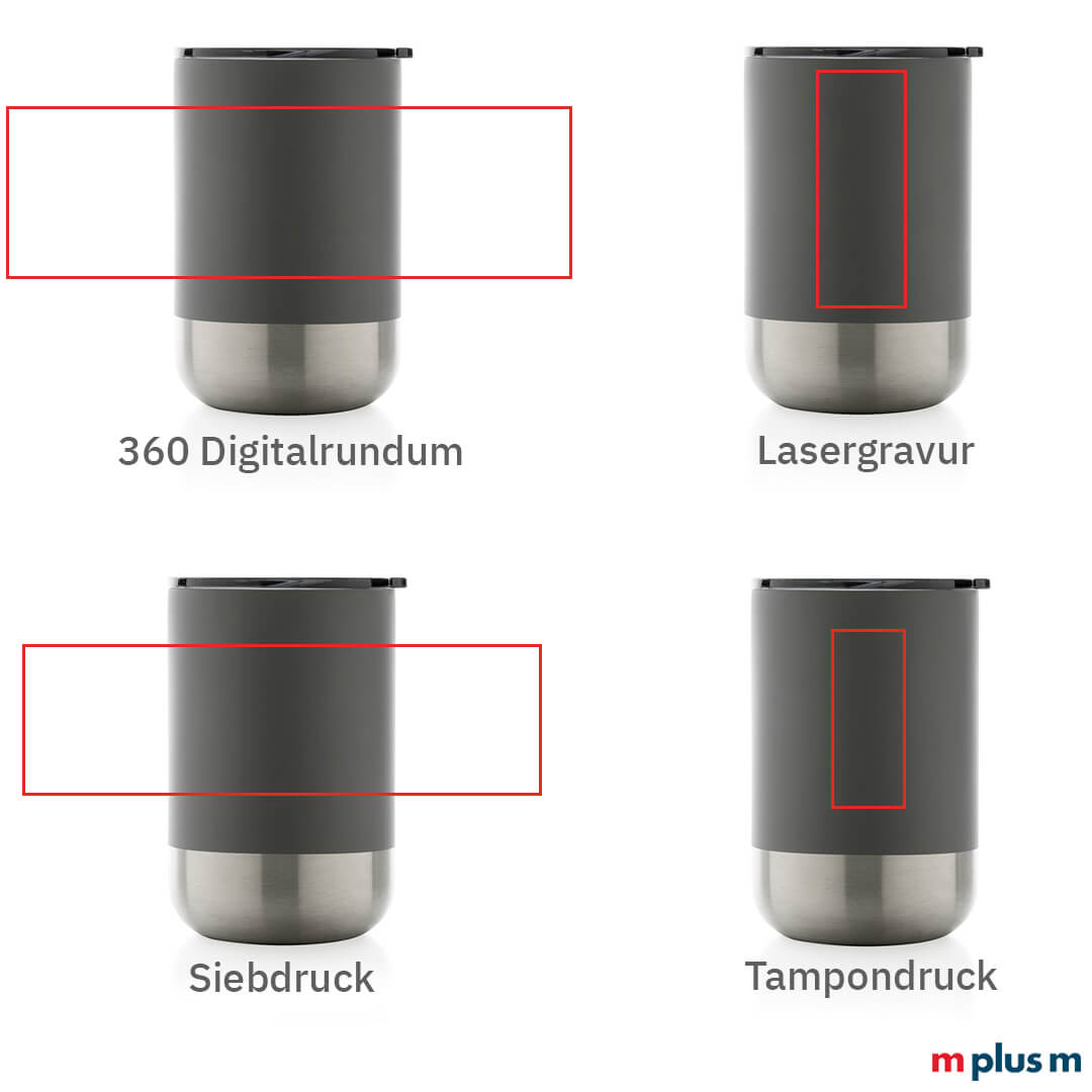 | 360° Rundum-Digitaldruck (auch Einzelnamen) | 252 x 80 mm | Becher horizontal | max. 4-farbig |