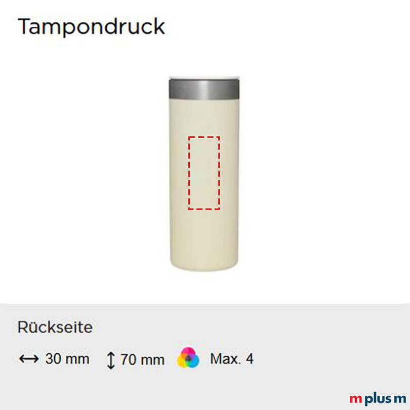 | Tampondruck | 30 x 70 mm | Rückseite | max. 4-farbig |