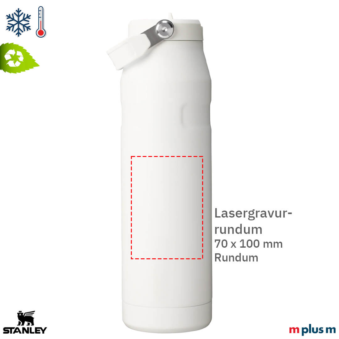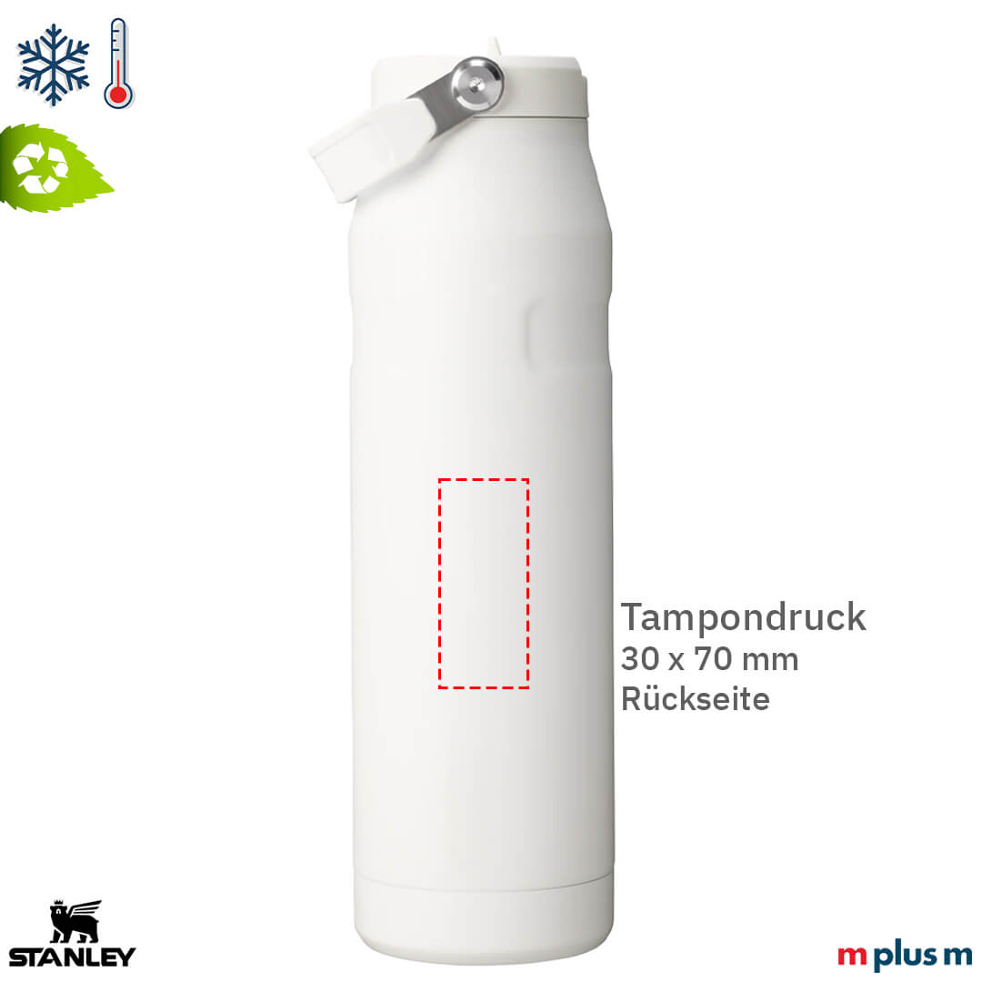 Ab einer Bestellmenge von 10 Stück können Sie Ihre Stanley IceFlow™ 2.0 Flasche 1,06l bedrucken lassen. Dadurch wird die Isolierflasche zu Ihrem idealen Werbeartikel.