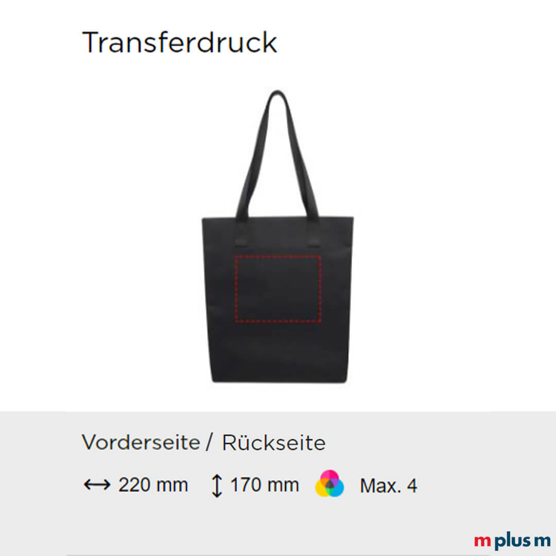 | Transferdruck | 220 x 170 mm (Vorder- /Rückseite) | max. 4-farbig |