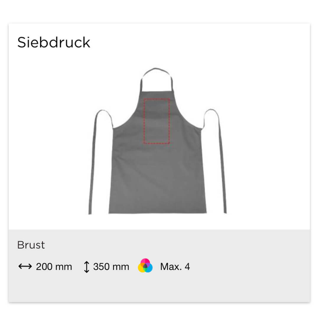 Ab einer Menge von 50 Stück können Sie die 'Victor' Latzschürze bedrucken lassen. Durch die Individualisierungsmöglichkeiten könne Sie sich Ihren eigenen Werbeartikel nach Ihren Vorstellungen produzieren lassen.