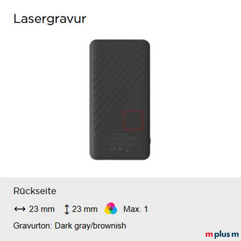| Lasergravur | Rückseite | Einfarbig (Dunkelgrau/bräunlich) | 23 x 23 mm |