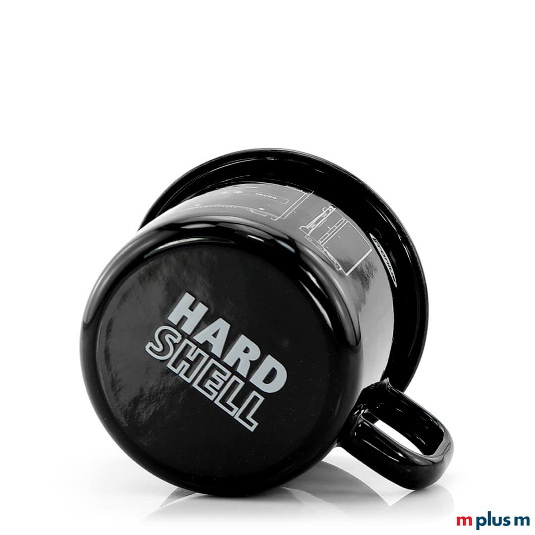 Die schwarzen Emaille Tassen werden ab 1.000 Stück in der Serienfertigung bedruckt. Der Aufdruck wird bei hohen Temperaturen in die Glasoberfläche der Emaille Tasse eingebrannt und ist in Haushaltsspülmaschinen natürlich dauerhaft und spülmaschinenfest.